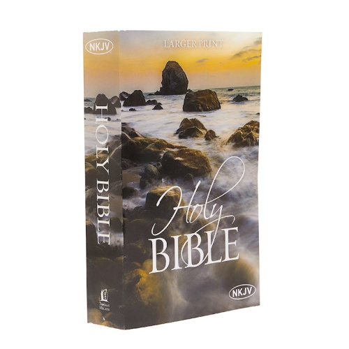 The NKJV Holy Bible is offered in this larger print, affordable edition for personal and ministry use including book introductions, plan of salvation, and 10 pt. font size.